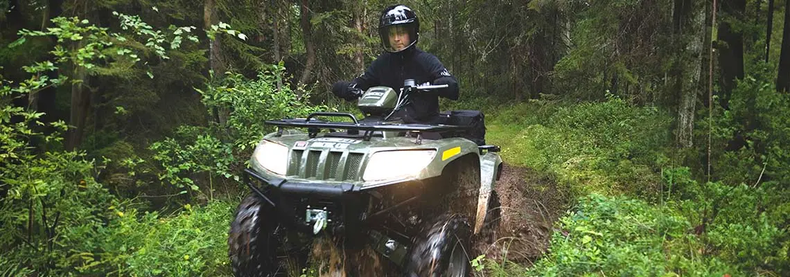 Guppiga och fartfyllda skogsturer kickar igång adrenalinet – men risken för olyckor ökar också när du kör i kuperad terräng. Som ägare av en fyrhjuling har du ett stort ansvar för att körningen ska vara säker för både dig själv och din omgivning. Du måste också visa hänsyn till naturen och inte störa människor och djur som vistas i skogen.
